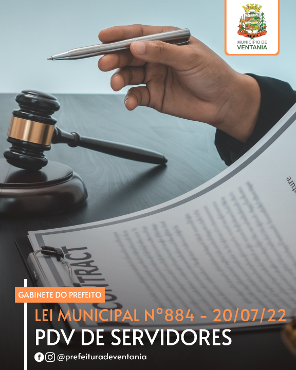A Câmara Municipal de Ventania aprovou a Lei de nº 884 de 20 de julho de 2022 enviada pela Prefeitura Municipal de Ventania que institui o Programa de Demissão Voluntária de servidores públicos do nosso município.