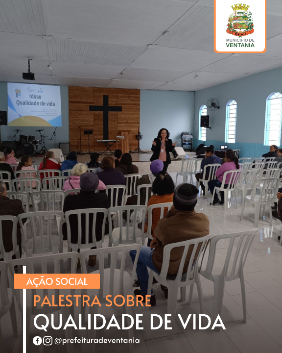 A Secretaria Municipal de Ação Social e Assuntos da Família em parceria com o SENAC juntamente ao CRÁS de Ventania e do distrito de Novo Barro Preto realizou na última quarta (21/09) uma palestra com o tema ?Qualidade de Vida? para idosos do nosso município.