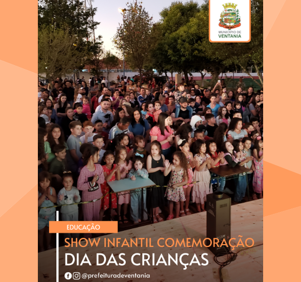 A Secretaria Municipal de Educação através da Prefeitura Municipal de Ventania realizou no último fim de semana em Ventania e no distrito de Novo Barro Preto, nos dias 08 e 09 respectivamente, a apresentação de um show infantil com muita música e vários personagens para as crianças do nosso município.