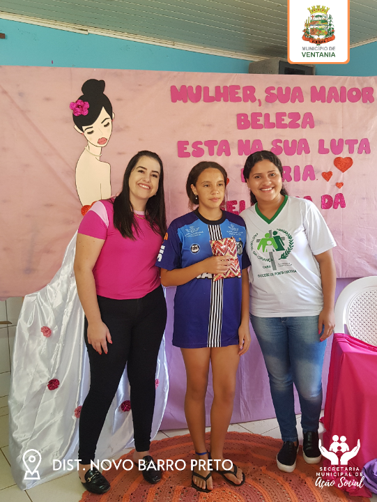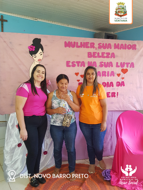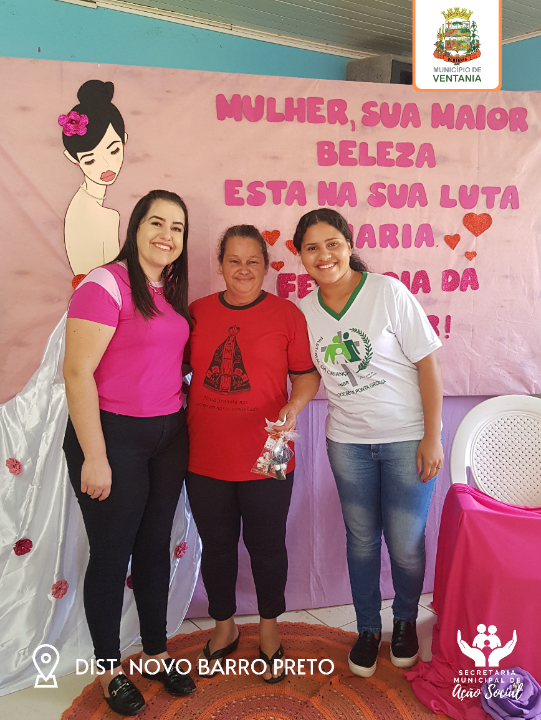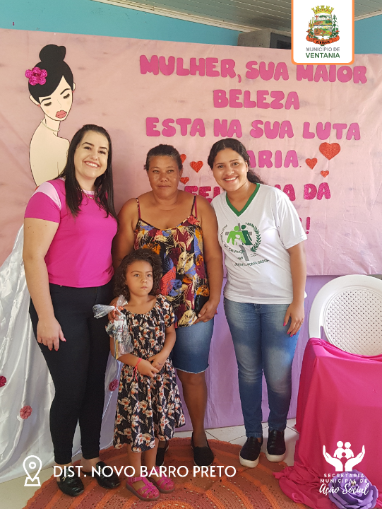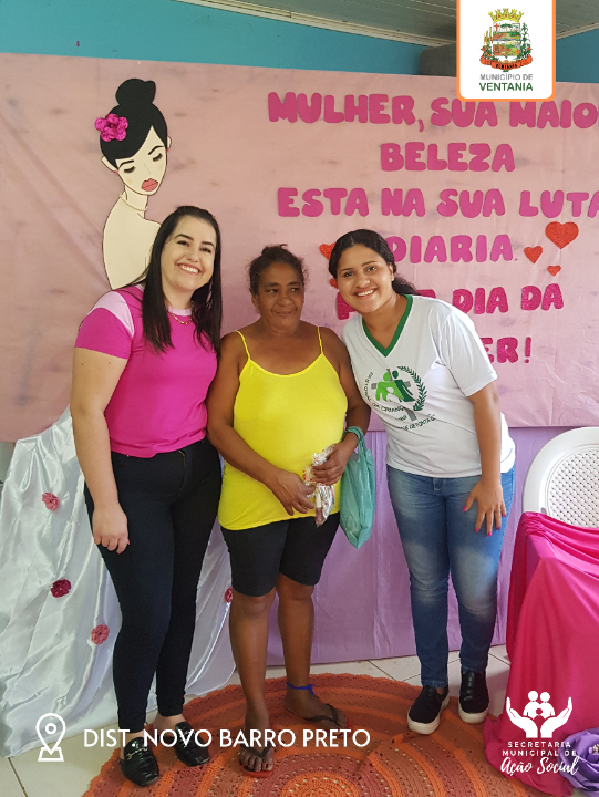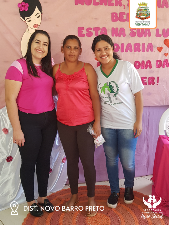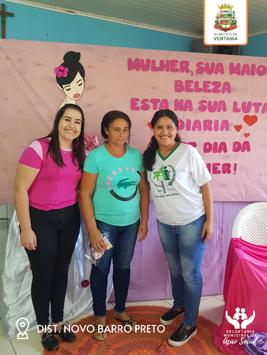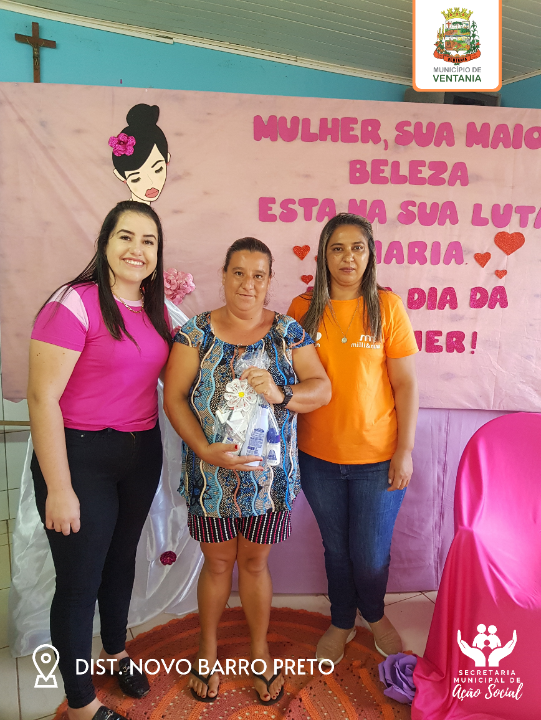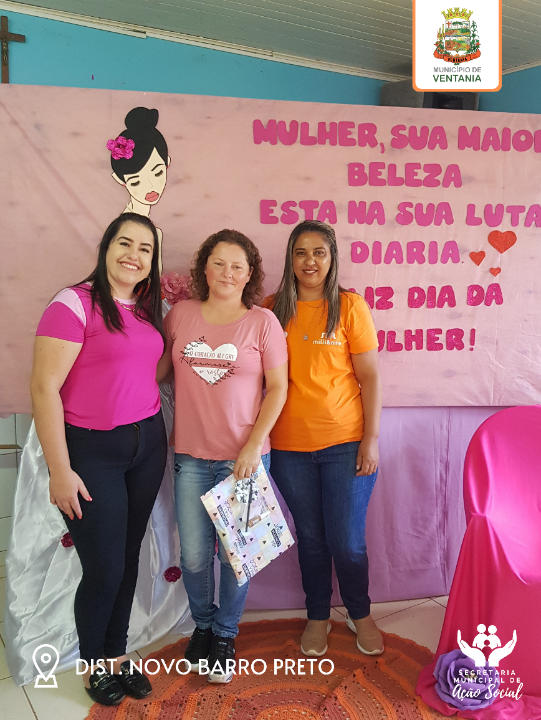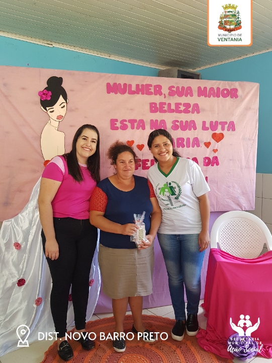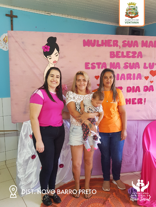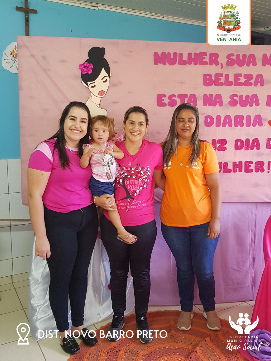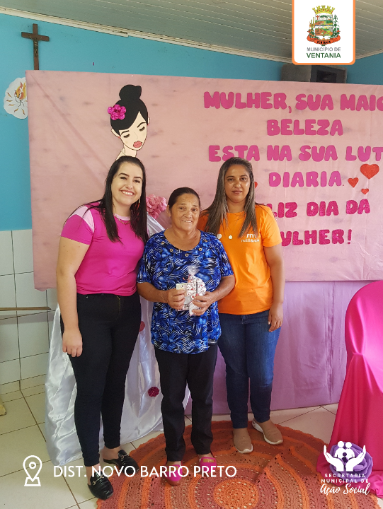 Na última semana, a Secretaria Municipal de Ação Social e Assuntos da Família junto com o CRAS, e em parceria com a Pastoral da Criança e do Adolescente realizaram uma semana especial para as mulheres que participam dos grupos de apoio do CRAS em comemoração ao Dia Internacional da Mulher em Ventania, no distrito de Novo Barro Preto, e no bairro Água Clara.