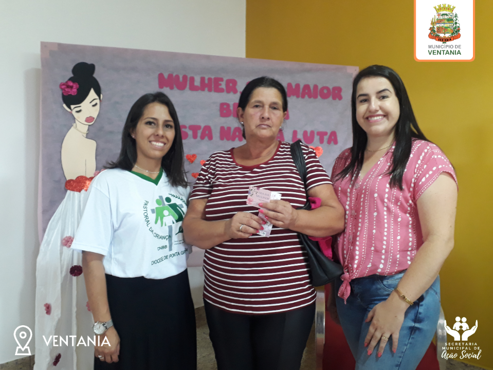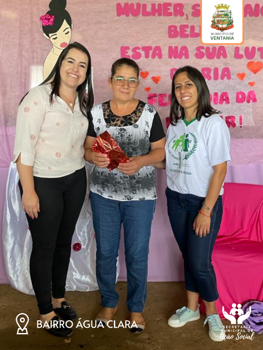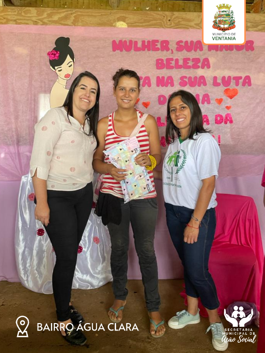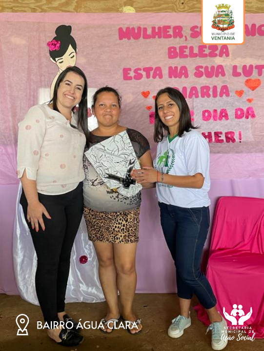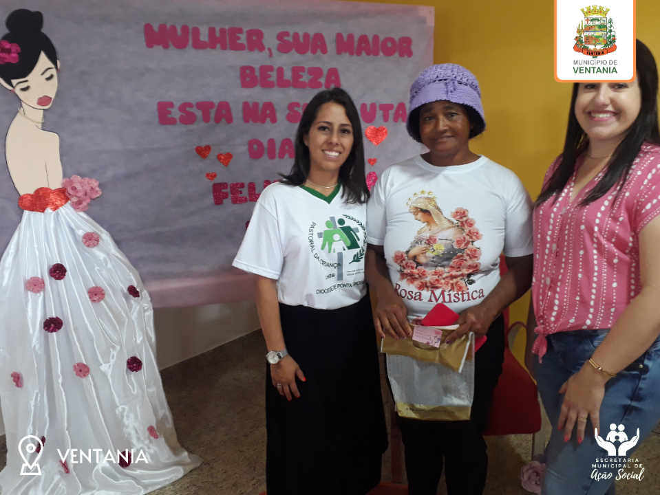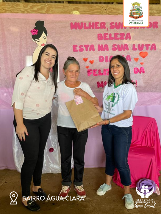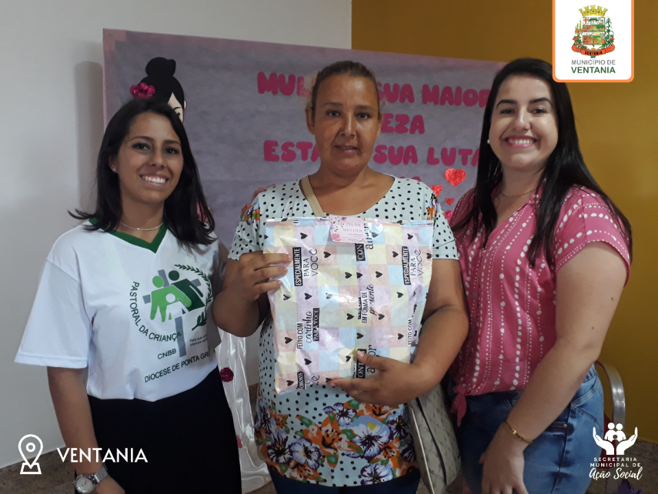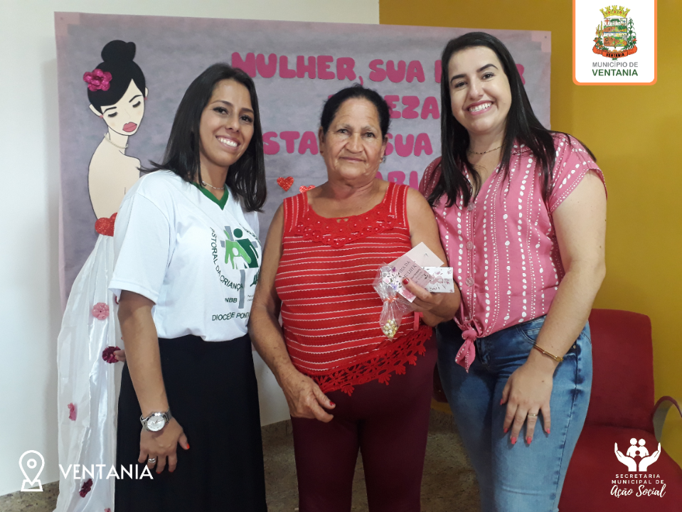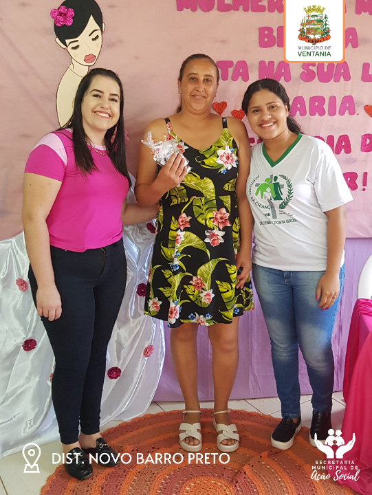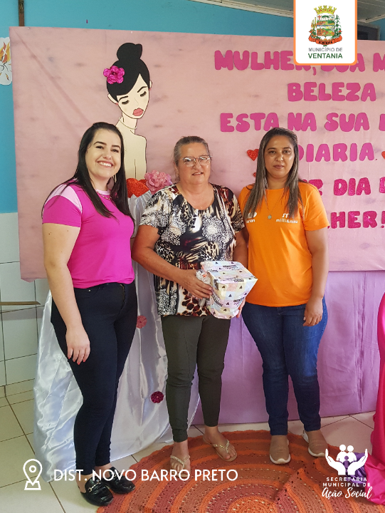 Na última semana, a Secretaria Municipal de Ação Social e Assuntos da Família junto com o CRAS, e em parceria com a Pastoral da Criança e do Adolescente realizaram uma semana especial para as mulheres que participam dos grupos de apoio do CRAS em comemoração ao Dia Internacional da Mulher em Ventania, no distrito de Novo Barro Preto, e no bairro Água Clara.