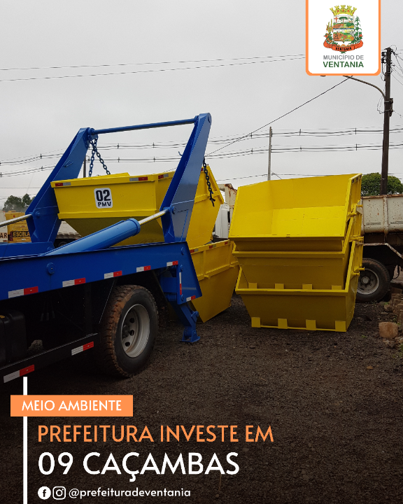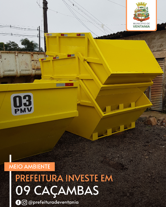 Na última terça (17) a Prefeitura de Ventania recebeu 09 caçambas estacionárias para a coleta de entulho em todo o nosso município.