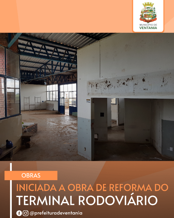O investimento previsto para a reforma do Terminal Rodoviário de Ventania é de aproximadamente R$ 1 milhão, sendo R$ 200 mil viabilizados pelo PARANACIDADE e aproximadamente R$ 800 mil de contrapartida do nosso município.