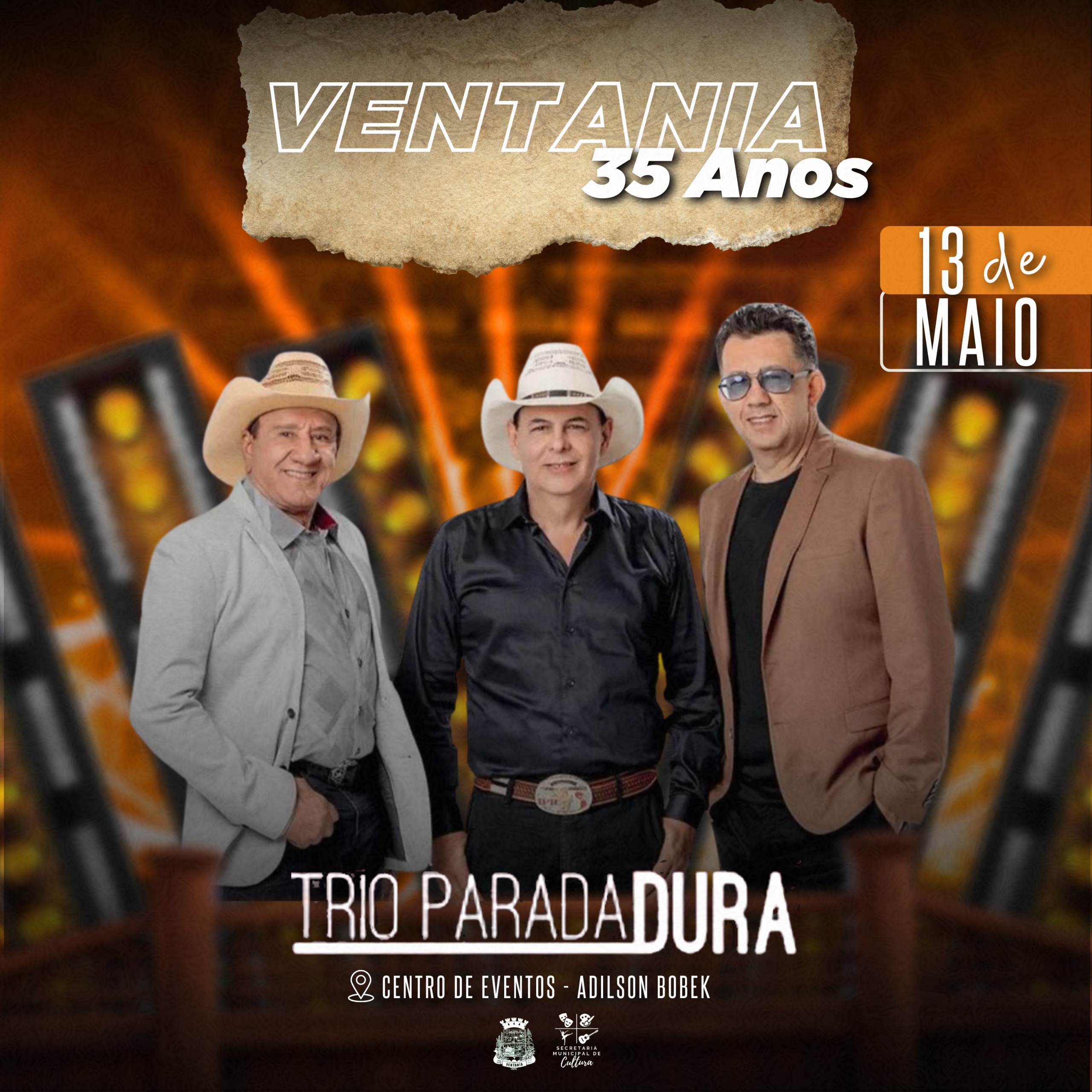 A Prefeitura Municipal de Ventania convida toda a população para celebrar os 35 anos do município, com uma programação especial que terá início neste sábado, dia 10 de maio, e seguirá até o dia 14.