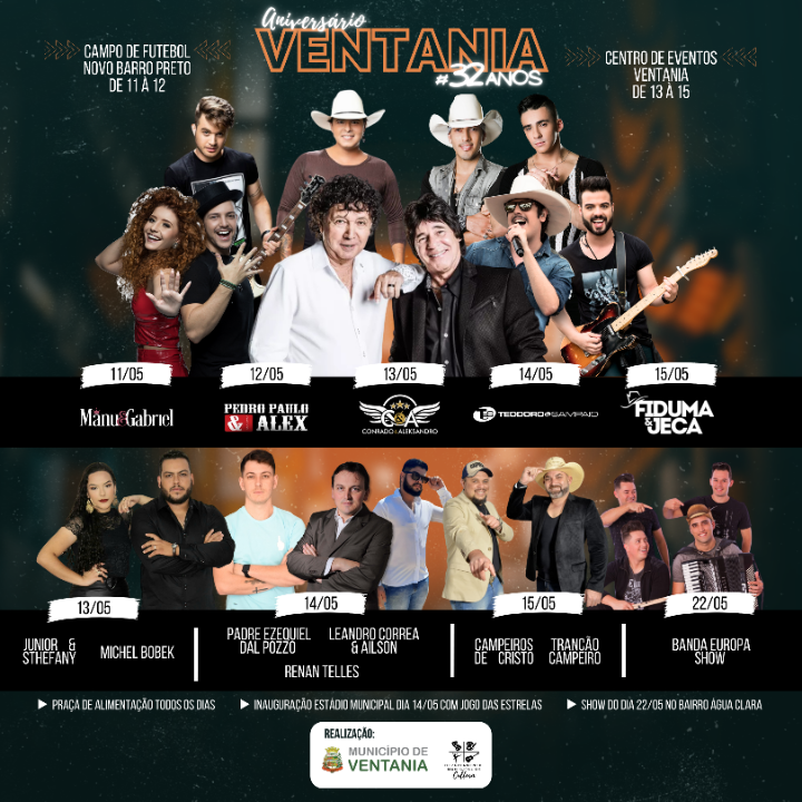 Veja a grade de shows e atrações nas festividades em comemoração aos 32 anos de emancipação política do nosso município.